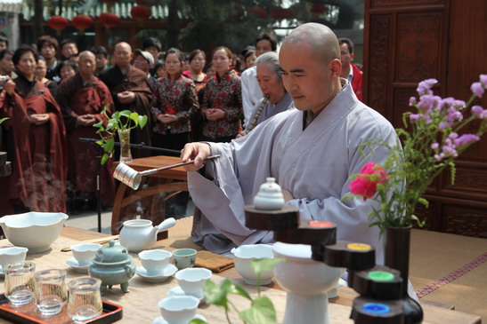 献茶供佛,在《百丈清规》中就有明确的“供茶”、“上茶”、“增茶、献茶”仪轨;灵光寺秉承教法,将禅修融于茶道之中,发展成为独具特色的“灵光茶道”。
