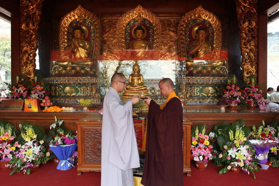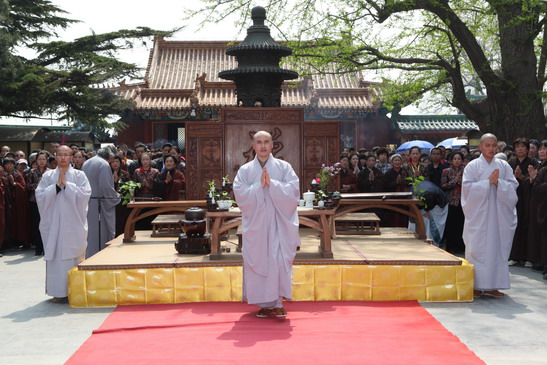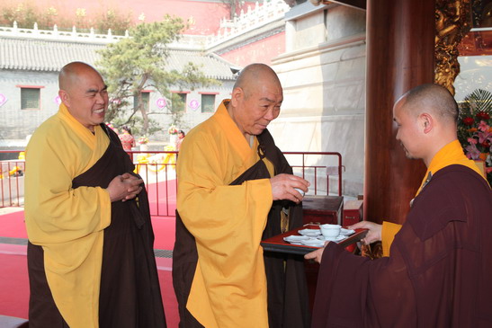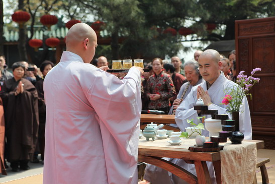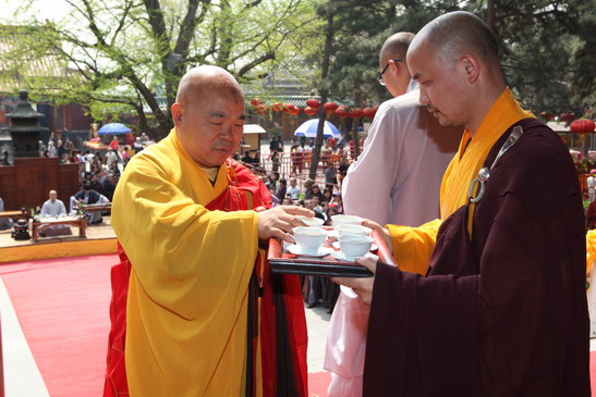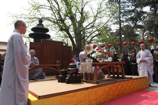 2013年4月27日上午,北京灵光寺在佛牙塔上隆重举行“第七届供佛斋僧甘露法会”。10点40分法会正式开始,常住法师唱诵经赞,衍韡法师禅茶供佛斋僧,将灵光寺禅茶文化表现得淋漓尽致。