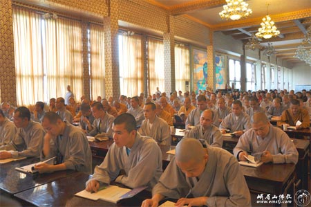 2013年5月30日下午、31日全天,苏州戒幢佛学研究所所长、闽南佛学院研究生导师、峨眉山佛学院研究生导师济群法师应邀在峨眉山大佛禅院作《普贤行愿品》系列专题讲座。讲座由峨眉山佛学院教务长法源法师主持,出席聆听讲座的有峨眉山佛学院全院师生及随喜大众共两百多人。