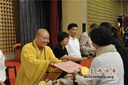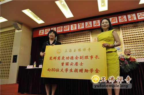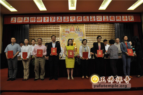 在今天的开幕式上,举行了觉群慈爱功德会第三届理会成员的聘任仪式,由到场领导向新当选的理事长和副理事长、常务理事颁发聘书。觉群慈爱功德会副理事长、新加坡超级集团董事长曾丽云居士在开幕式现场举行慈善助学活动,向80位品学兼优的大学生代表发放助学金。开幕式上,领导还向参加本届慈善周义诊的医生代表颁发爱心证书,云南驻沪办领导向玉佛禅寺觉群慈爱功德会赠送锦旗的仪式。