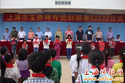 下午,上海玉佛禅寺觉群慈爱功德会会员来到云南景东太忠乡,举行“觉群慈善图书室”揭牌和助学金发放仪式(三合完小)并参观学校。接下去的几天,功德会的志愿者将在薛宝中副理事长的带领下在该校为他们整理图书。