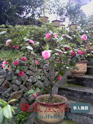 寺院通道两旁的花朵(图片来源:凤凰网华人佛教)