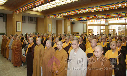 我院副教务长广如法师、教处务主任理证法师、研究部主任园慈法师、教务处副主任觉灯法师、永兴法师在毕业典礼主席台就座。