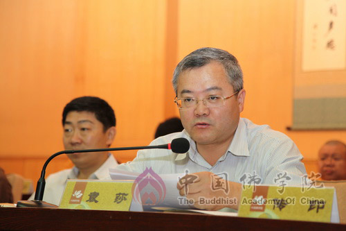 袁莎副局长首先代表中共中央统战部对2013届本科班毕业生圆满毕业表示热烈祝贺。袁莎副局长在讲话中对全体学员提出三点希望:第一、坚定信念,增强信心。发扬爱国爱教的优良传统,把人民利益和国家利益永远放在第一位;第二、加强修行,奋发进取。努力让自己成为在政治上靠得住、学识上有造诣、道德上能服众、关键时起作用的宗教人士;第三、积极探索,努力践行。要积极发掘和弘扬佛教教义中有利于社会发展、时代进步的阐释,为构建和谐社会做出贡献。