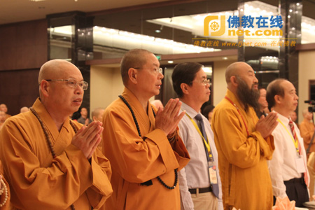 闽台佛教,同根同源,血脉相溶,法脉相承。2013年6月13日下午17时30分,第五届海峡论坛·闽台佛教教育交流研讨会开幕式暨欢迎晚宴在厦门海景千禧大酒店隆重举行。闽台两地诸山长老、大德法师,国家宗教局、福建省、福州市、厦门市政府有关领导应邀出席。凝聚两岸法缘,共同促进闽台两地佛教界交流交往,推动两岸关系和平发展。