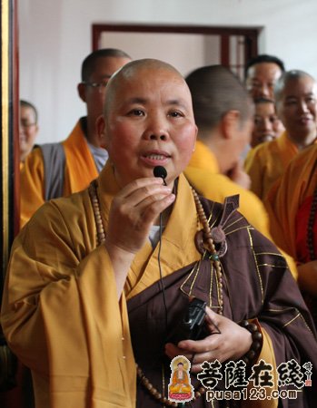 定慧法师在致辞中讲到:果圣法师荣任旃檀庵的监院,我们衷心祝愿旃檀庵能够香火兴旺、正法久住、护法龙天护持、四众弟子护持。圣怀法师首先祝贺果圣法师荣任旃檀庵监院,同时,他也希望果圣法师能够早日的融入到奉贤佛教当中,带动一方,为佛教事业的发展作出应有的贡献。性康法师讲到:果圣法师来到奉贤,希望她能主持一方,弘扬一方。衷心祝愿佛法长兴,衷心祝愿旃檀庵常住兴隆。