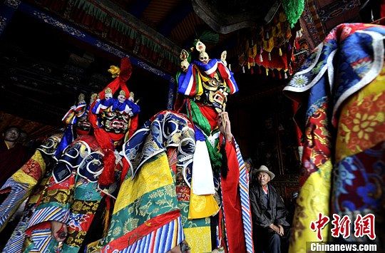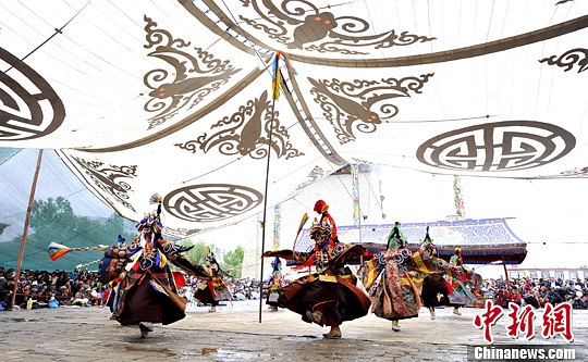 西藏桑耶寺上演千年神舞 欢度一年一度经藏节