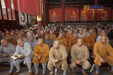 由浙江绍兴炉峰禅寺组织成立的“炉峰心香大讲堂”第一讲在炉峰禅寺大雄宝殿首度开讲