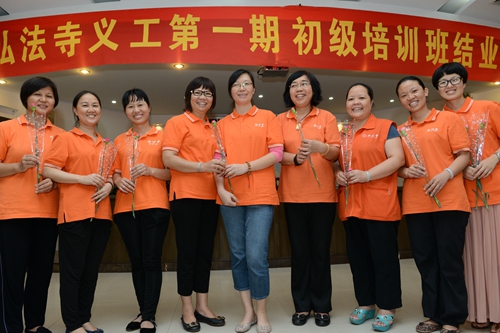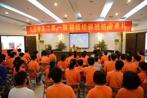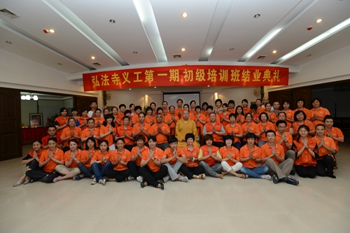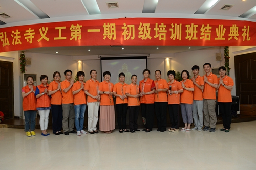 2013年6月22日,2013年弘法寺义工首期初级培训班圆满结业。培训班的学员们穿着统一的义工服,带上礼物,兴高采烈地齐聚在东湖公园深圳佛协二楼,参加培训班结业典礼。