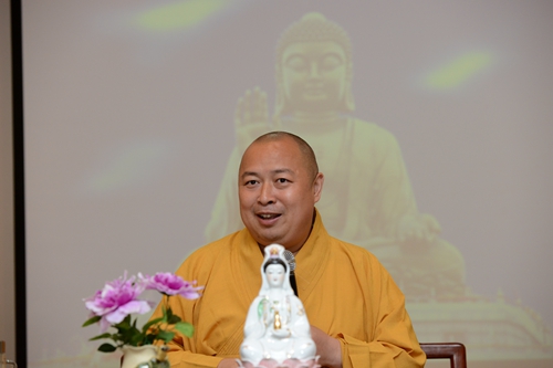 典礼最后,在热切的期盼中,学员们迎来了中国佛教协会副会长、弘法寺方丈印顺大和尚到场为大家做开示。印顺大和尚同大家分享了本焕长老的生平,结合他自己出家前后的一些经历,告诉大家如何善用其心,做事做人,做一个护持佛法的义工菩萨。