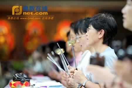 “参加助念是一件非常庄严的事,不仅庄严自己的心、庄严往生者的家属,更是庄严往生者往生净土。助念虽能利益他人,但受益最大的仍是助念者本人。应当争取受派助念的因缘,并以感恩之心,感激成就我们助念的人。”法鼓山创办人圣严法师曾如是说。为教导民众如何关怀生者,并给予正确的佛法生死观念,法鼓山特别开设了“大事关怀诵念培训”课程,进行助念梵呗法器教学,祈愿生死两安。