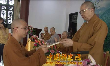 传正法师向五位研究生颁发毕业证书,并作重要讲话。此次五位研究生的毕业,是各种因缘的成就,离不开曹溪佛学院以及各位法师的辛勤付出,而本届参加答辩的论文,既体现出纯正的学风和较为深厚的佛学理论水平,也折射出僧人虔诚的宗教情操。