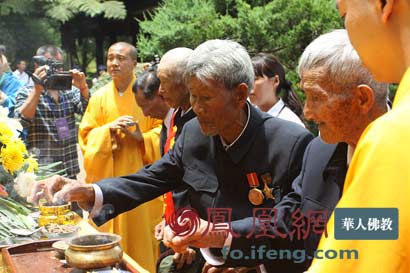 远征军老兵拈香祭拜战友(图片来源:凤凰网华人佛教 摄影:丹珍旺姆)