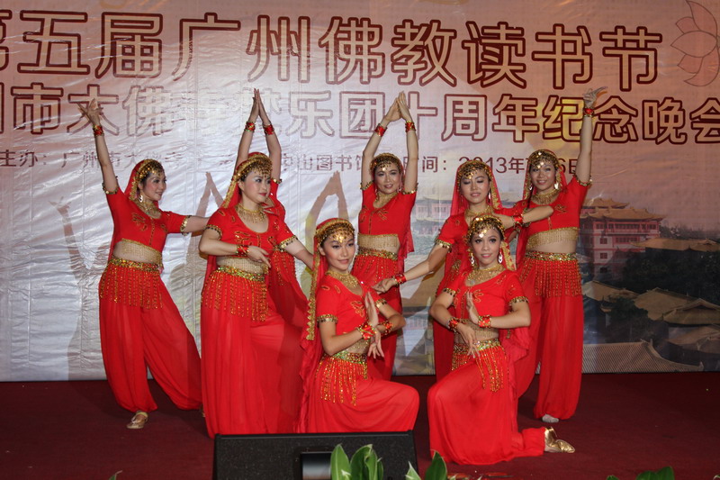 本届佛教读书节,恰逢大佛寺梵乐艺术团成立十周年。当晚,梵乐艺术团的一百多位演员们为现场观众奉上了精心准备的佛教文艺节目,分为《千手观音》、《碧涧流泉》、《佛光普照》等三个篇章。