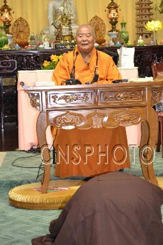 星云大师为普寿寺尼众佛学院的尼众作开示(图:中新社)