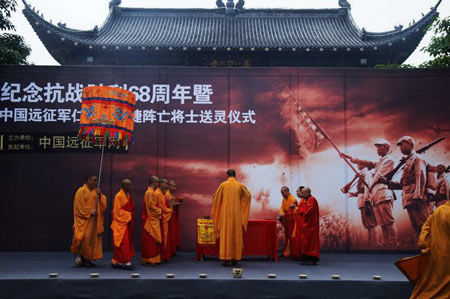重庆华岩寺举行中国远征军“仁安羌之战202位阵亡将士总灵位”送灵法会