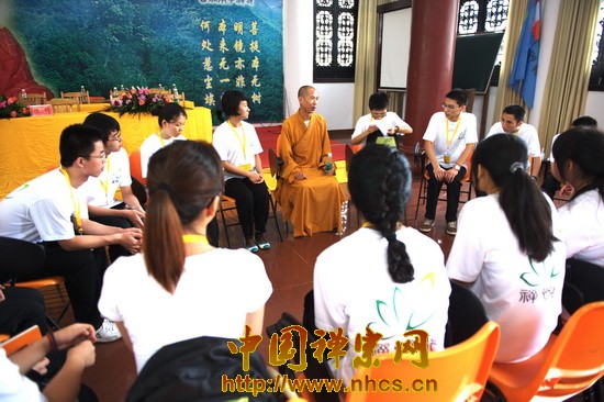 闽南佛学院副院长传明法师针对“禅悦为食”、“禅茶一味”中禅的滋味以及理性与信仰两者关系做了精彩的开示。传明法师希望营员们珍惜来到南华禅寺亲近六祖的殊胜因缘,学习佛法,树立正信正见。