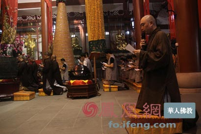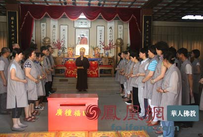 江苏太仓同觉寺举行2013夏季禅修营共修法会(图片来源:凤凰网华人佛教)