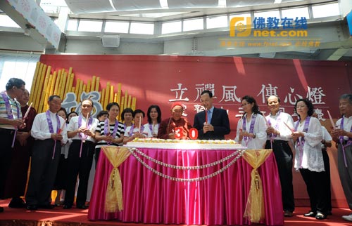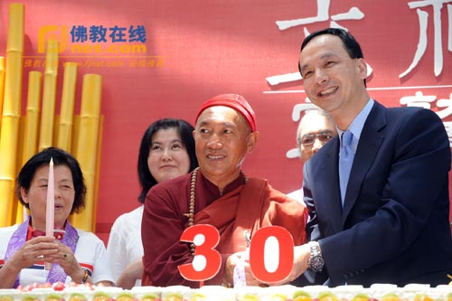 心道法师与朱立伦市长及与会贵宾一起切蛋糕庆灵鹫山三十周年