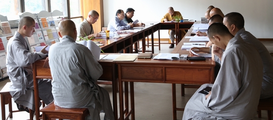 其后,演相法师、通祥法师、亦合法师分别进行了开题报告。经过了一个多小时的陈述与问答过程,报告者陈述了自己论文的文献资料、研究方法、写作思路、研究意义以及写作规划等等方面,答辩老师对参加此次开题报告的报告者提出不少建议和忠告,并对其论文的不足之处进行了现场指导。