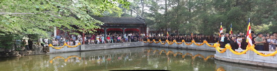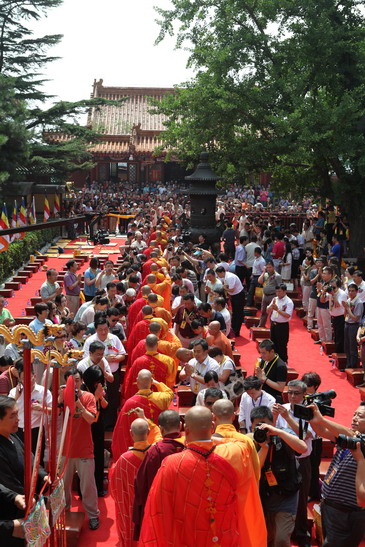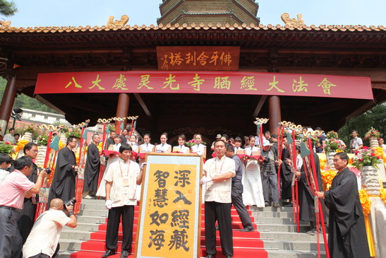 大法会在佛牙塔上隆重开幕。全国各地17位应常藏大和尚邀请而来的诸山长老和灵光寺常住僧众一起为参加法会的大众诵经祈福,并按佛教丛林传统为从六处香界寺藏经楼内迎请至佛牙塔下的1800卷经书、经版举行“晒经”法事。中国佛教协会会长传印长老对此次活动的非常重视,特别题写了贺词:“深入经藏、智慧如海”。莅临法会的诸山长老还共同发心,向香界寺藏经楼捐赠:佛像1尊、佛塔1座、经书9函。