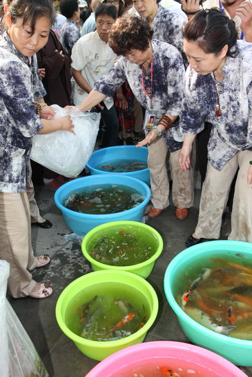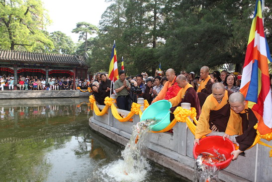 法会开始前,常藏大和尚率灵光寺四众弟子籍着二处百年金鱼池重新修复的因缘举行放生大法事,为现前大众消灾祈福,功德回向法界众生,祈愿佛法普洽、社会和谐、世界和平、国泰民安。