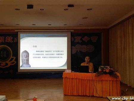 安徽省佛教协会副会长兼秘书长智文法师在进行佛学讲座