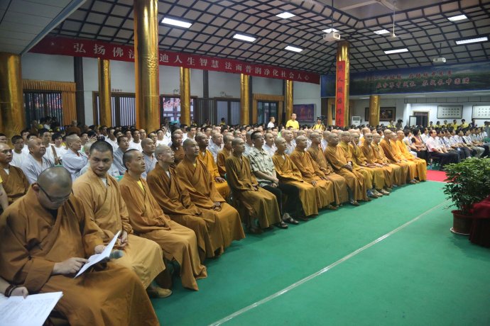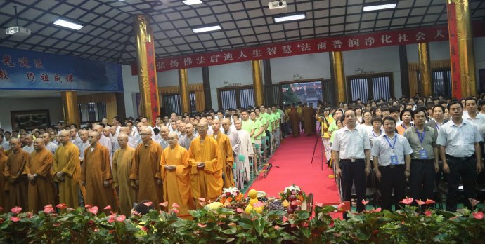 在庄严的国歌中,法门寺方丈学诚大和尚及应邀前来的诸位大德、领导步入法堂。本次开幕式由宏涛法师及学员熊伟主持。陕西省宝鸡市扶风县宗教部门、佛协组织、信众代表、义工、学员参加了开幕式。