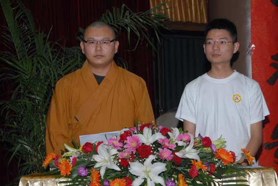 智超法师致开幕词,围绕着本届法门之光的主题“随缘素位,奉献人生”为学员们进行开示。