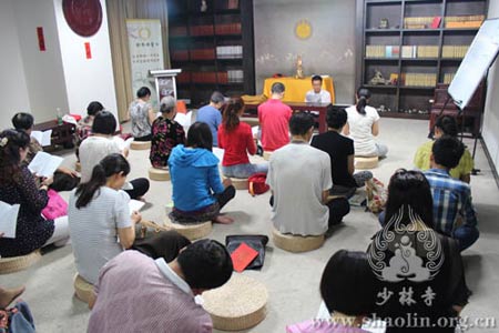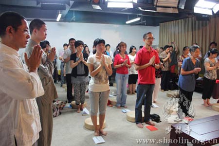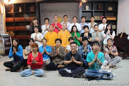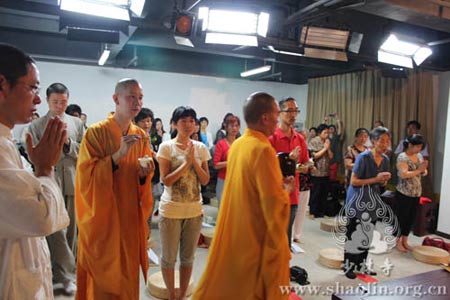 2013年7月14日上午,都市禅堂隆重举行读经会启动暨洒净祈福仪式,有近五十位善信随喜参加。祈福洒净仪式由少林寺延侦法师和延宗法师主法,如法如律,如律如仪。