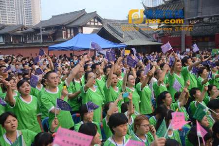 稍后的歌舞《寒山僧踪》、川剧《变脸》将分享典礼推向了高潮。成都昭觉寺方丈演法法师、四川尼众佛学院院长如意法师为新营员们现场抽奖,并为获奖营员赠送了精美的乌木观音像。