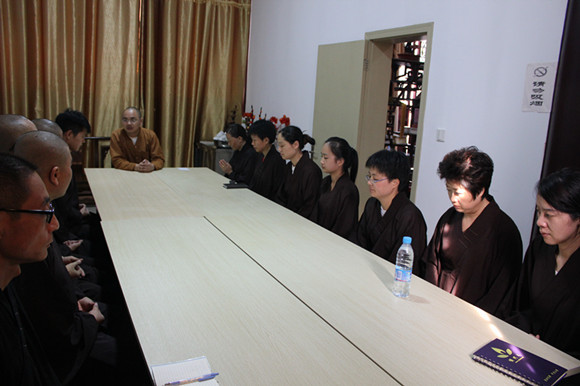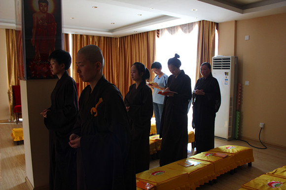 7月26日早上7点,寺院住持本源法师特意为这些早期来到寺院的学员就衣着、行持、威仪等方面做了严肃而慈悲的开示。本源法师在开示中鼓励学员来到寺院后,就把在世俗社会上的一切都倒干净了,用戒来管住自己的眼耳鼻舌身意六根,过一段真正的出家人少欲、清净、奉献的生活。更勉励学员们,能在寺院生活中收获法喜,出去后能弘扬佛法,在世间播撒菩提种子。