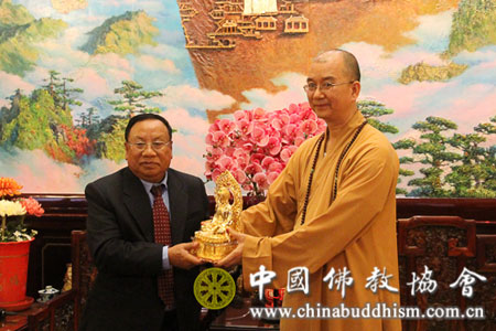 老挝建国阵线中央主席潘隆吉一行参访中国佛教协会
