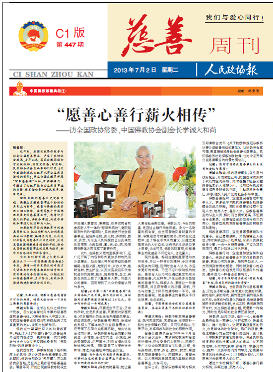 记者:对于本报(人民政协报)即将开设的“佛教与慈善”专栏,您有怎样的期许和希望?