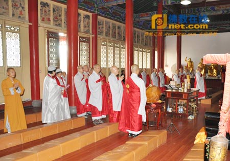 韩国佛教太高宗参访团一行在报恩寺大殿礼佛