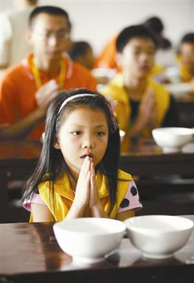 饭前合十念经(图片来源:晶报)