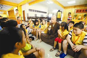 弘法寺的印钦师父为国学班的孩子们讲课(图片来源:晶报)