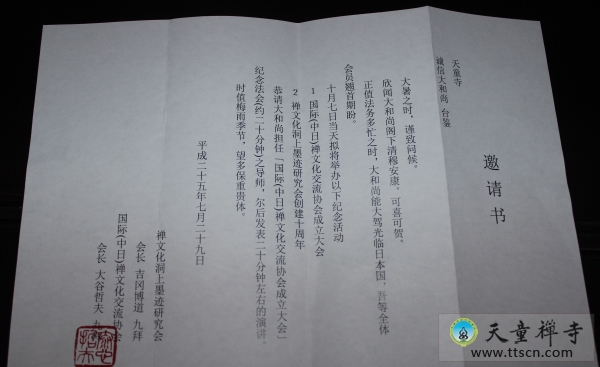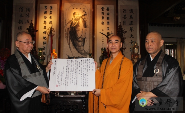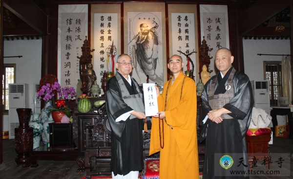 2013年7月30日上午9时,国际(中日)禅文化交流协会大谷哲夫会长一行4人到天童禅寺拜访诚信大和尚。浙江省佛教协会副会长、浙江慈云佛学院院长、宁波市佛教协会会长、天童禅寺方丈诚信大和尚在大鉴堂接见了大谷哲夫。东武株式会社法人东京支店陈志成先生陪同并担任翻译。