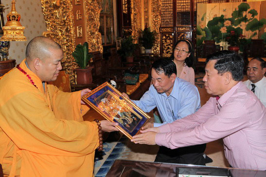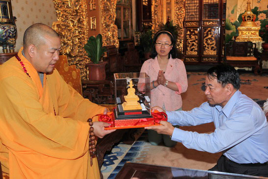 2013年7月2日上午,缅甸联邦巩固和发展党(“巩发党”)总书记貌貌登先生率应中国共产党邀请到京访问的缅甸代表团一行7人,在中佛协国际部罗喻臻女士陪同下,专程来寺拜望大和尚并参拜佛牙舍利;受到本寺方丈常藏大和尚的热情接待。