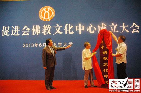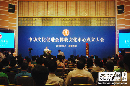 2013年6月28日,中华文化促进会佛教文化中心成立大会在北京大学英杰交流中心阳光大厅隆重举行,来自全国各地的佛教学者,汉藏两地高僧大德,台湾代表以及北大、清华、人大以及复旦等高校禅学社学生代表共300余人参加了本次大会。