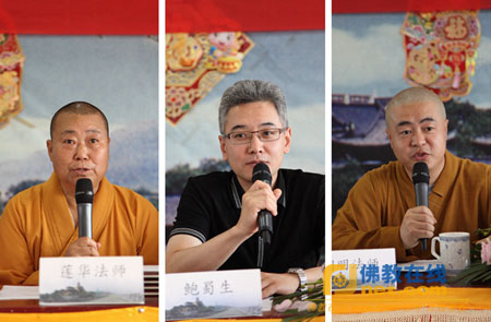 莲华法师、鲍蜀生副处长、朗明法师讲话(左起)