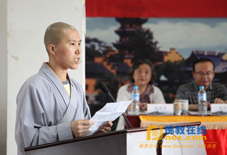佛学院毕业班、居士班学生分别代表毕业生发言。朗明法师、白欲晓教授代表学院老师给毕业学生以深情的寄语。宗志清副局长、陈建华副秘书长分别发表讲话,希望毕业学生能爱国爱教,继续做好弘法利生事业,并对佛学院教学和发展提出了中肯的意见和期望。