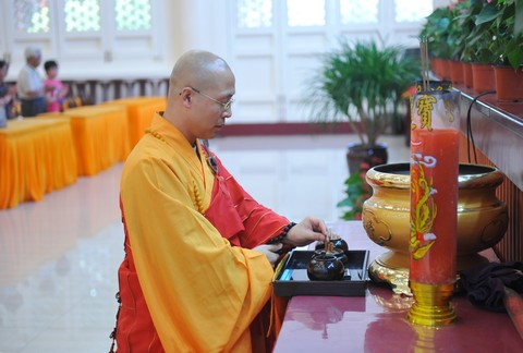 图3:智宗法师在讲座前拈香礼佛