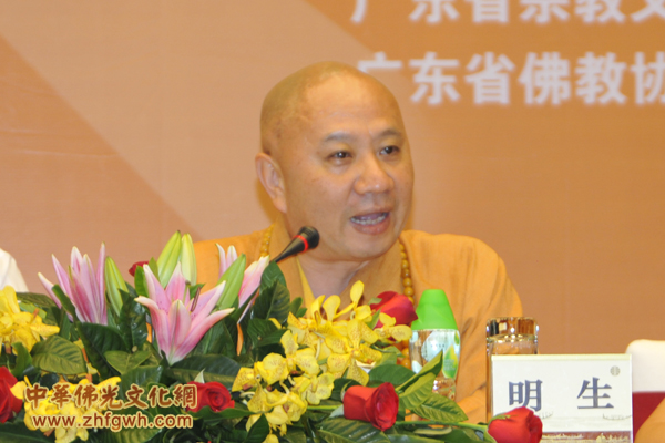 中国佛教协会副会长、广东省佛协会长、光孝寺方丈明生法师介绍广州会场筹备情况