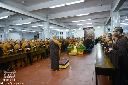 2013年农历七月十三日晚,结夏安居即将圆满之际,平兴寺常住诸师及信众二千余人于圆通殿举行蒙山施食法会,讽诵经咒,以济十方法界六道群灵,超生乐土。
