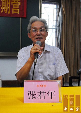 寒山寺文化研究院张君年院长作为爷爷辈的长者向小朋友们做了一番语重心长的讲话。张院长首先祝愿小朋友能茁壮成长,并说想要茁壮成长就需要吸收各方面的文化知识,佛教文化知识是不能丢弃的知识,佛教有悠久的历史,在寒山寺生活几天,通过吟诵佛经,抄写佛经,听法师讲解佛教知识,去体验佛教寺院生活,感受这种有文化生活。