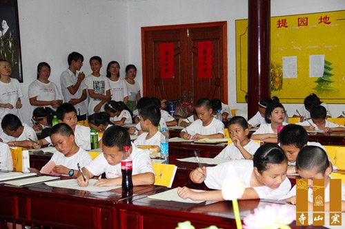 2013年8月10日上午9时,炎夏的烈日挡不住小朋友们的求知热情,来自全国各地的60多名小朋友挤满了寒山书院教室,参加本寺第五届少年暑期夏令营。开营仪式由本寺弘法部恒顺法师主持。