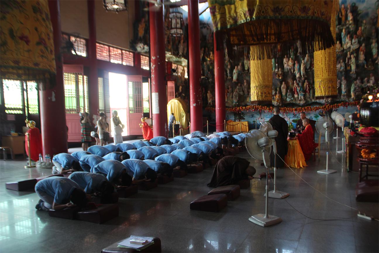 毕营结束后,近40位营员礼请上顿下成法师为大家受持三皈五戒及八关斋戒。法会现场庄严肃穆,秩序井然。
