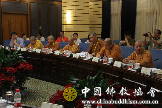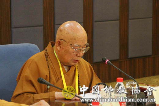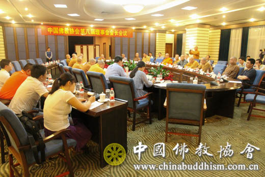 会议由传印会长主持,王健秘书长在会上就中国佛教协会成立60周年纪念会暨第八届理事会第二次会议的筹备情况作报告。