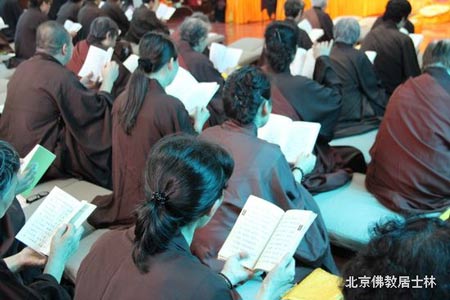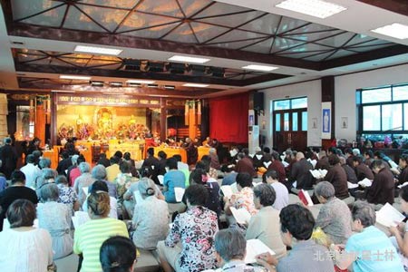 2013年8月15日,北京佛教居士林启建盂兰盆法会,此次法会将持续至8月21日圆满。法会期间大家恭诵《地藏菩萨本愿经》。